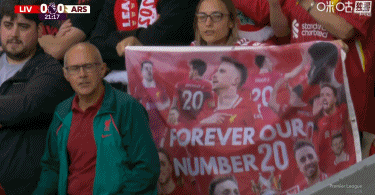比赛第20分钟,镜头给到观众手举若塔横幅