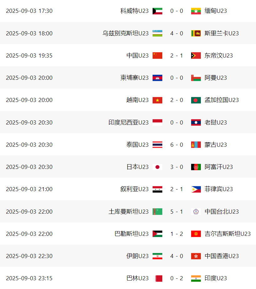 第七届U23亚洲杯预选赛已经结束了首轮比赛,一家欢喜一家愁,澳大利亚队、韩国队、伊拉克队、阿联酋队、卡塔尔队、约旦队、泰国队都是大比分狂胜对手,纷纷制造了惨案。此外,这个比赛日还有4场冷门,印度队、老挝队、缅甸队、柬埔寨队都拿到了积分。